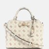 - Top handles with detachable charm. Removable crossbody strap.