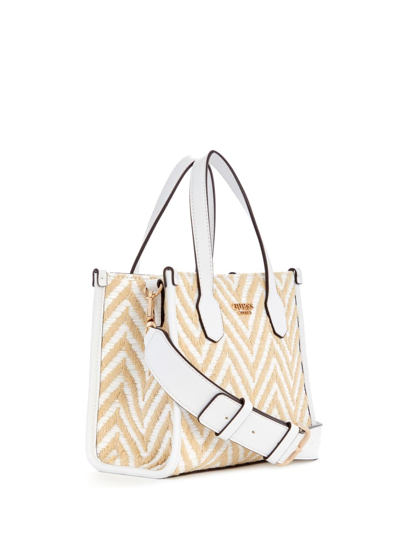 - Woven herringbone raffia tote bag