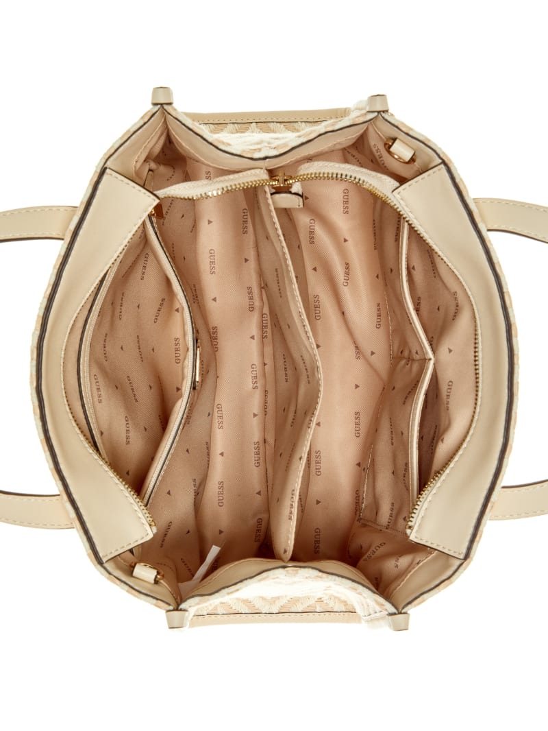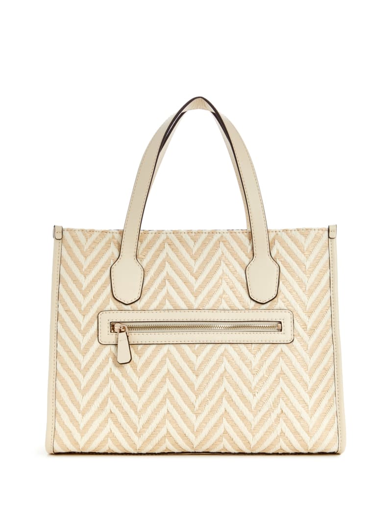 - Woven herringbone raffia tote bag