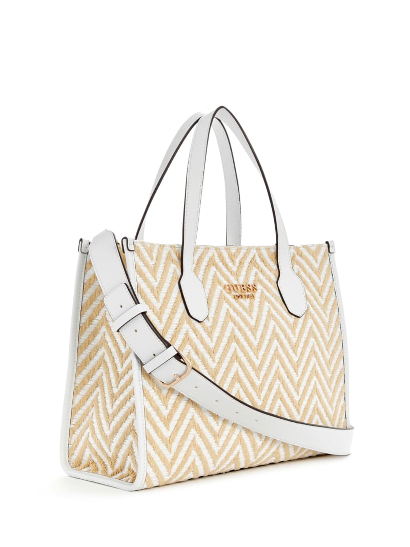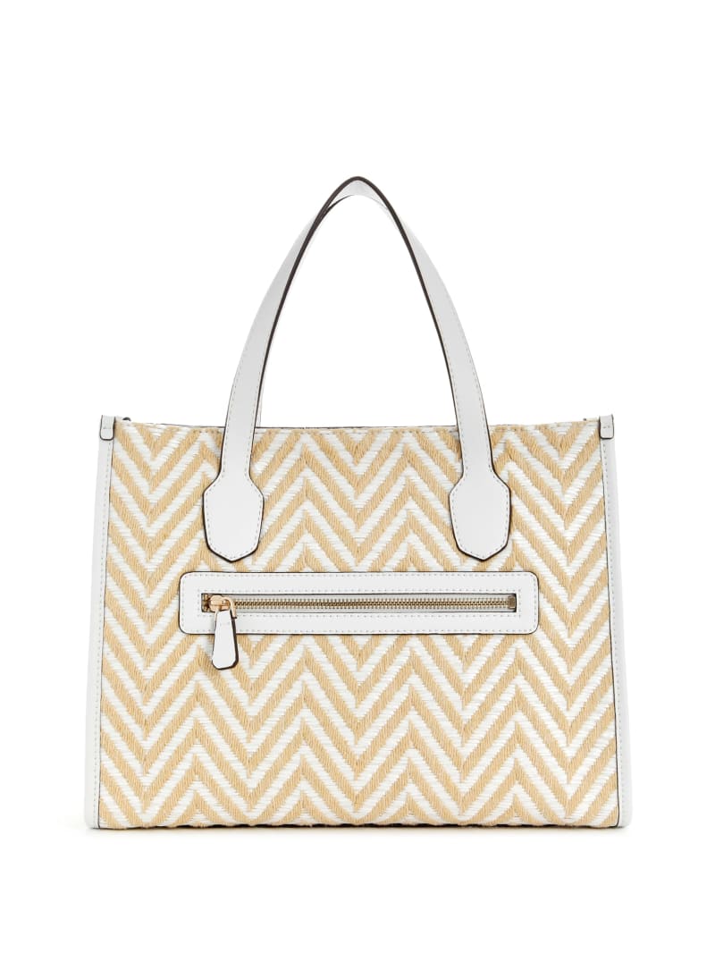 - Woven herringbone raffia tote bag