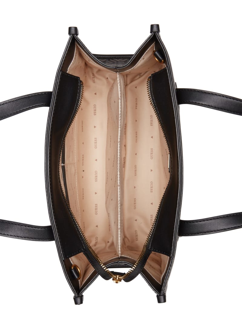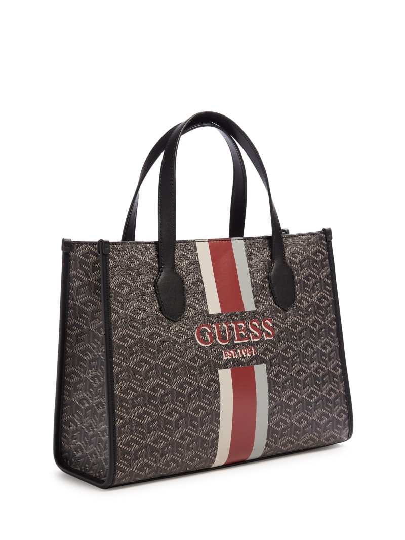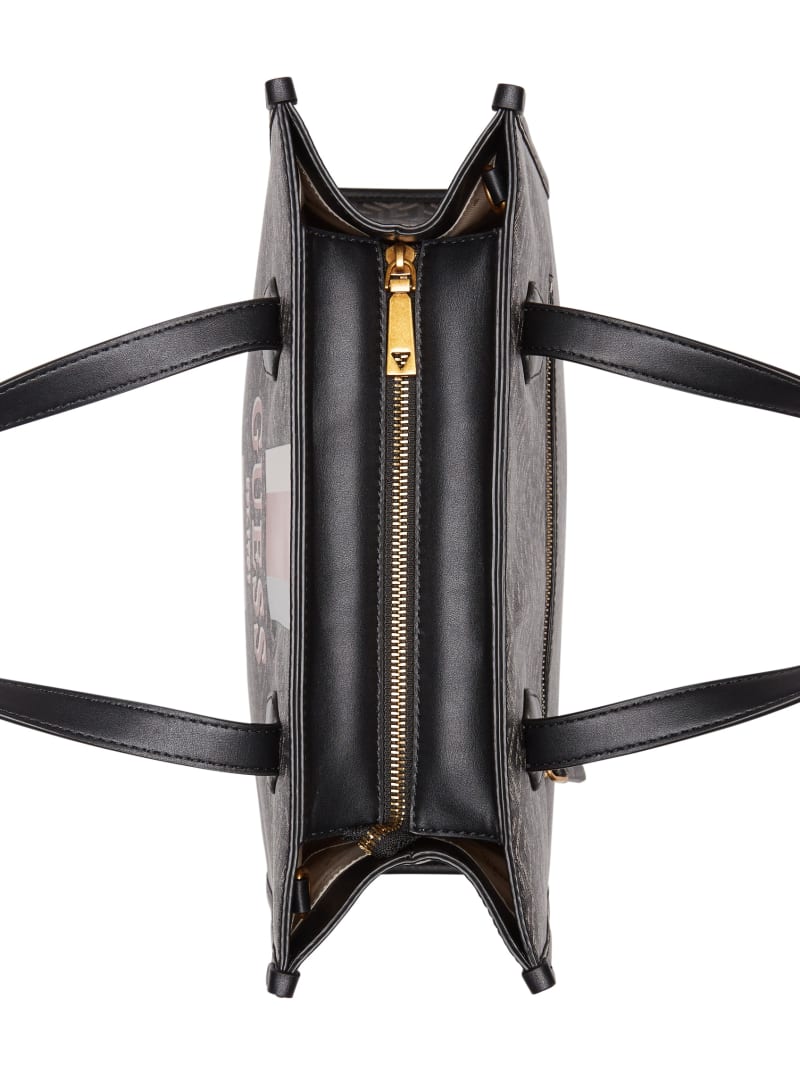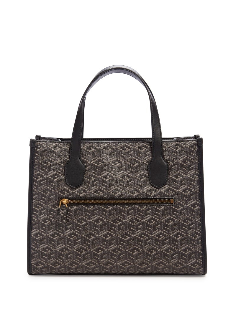 A structured finish to your look, this tote features an allover G Cube printed faux leather, with dual top handles, front logo graphic, spacious interior with multifunctional pockets and top-zip closure.