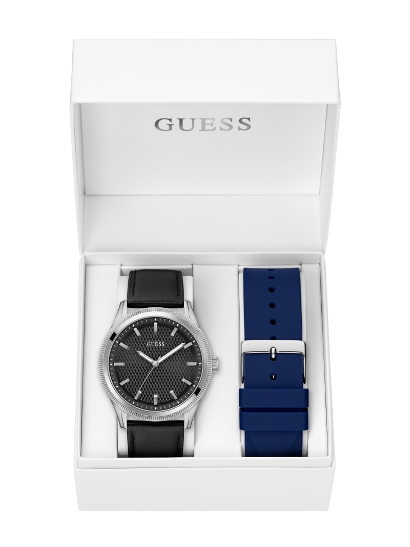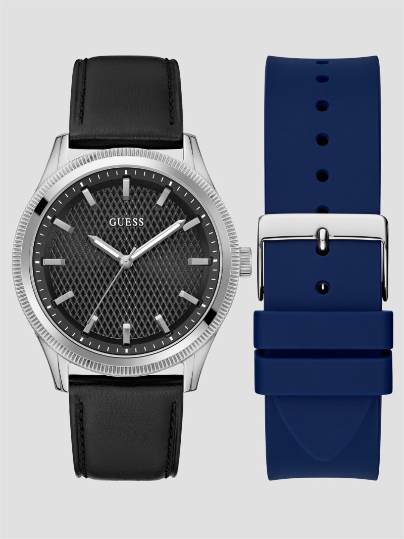 - Silver-tone leather analog watch