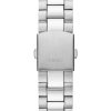 Keep your look sleek with this polished silver-tone watch featuring a textured bezel surrounding a black analog dial with day and date functions. Completed by a link bracelet.