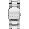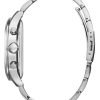 This water-resistant watch features a polished silver-tone steel bracelet for an edge-driven look with masterful performance. Includes stopwatch and date functions.