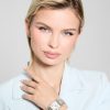 - Textured white dial