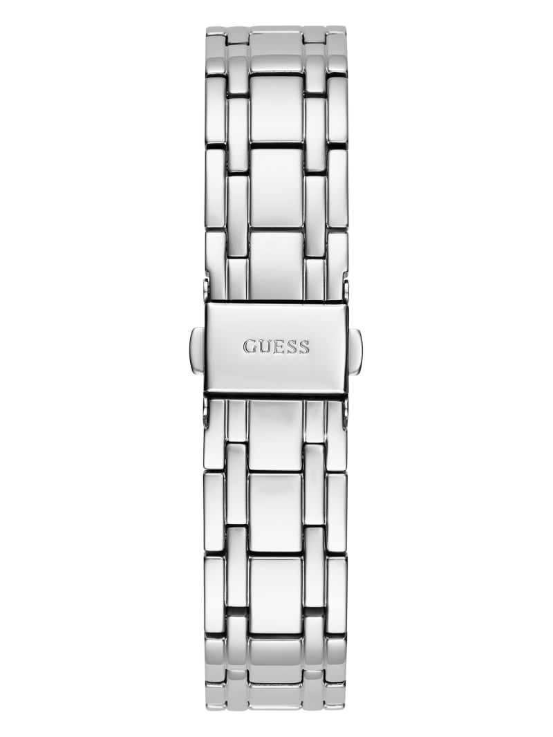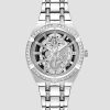 - Polished stainless steel link bracelet with crystal details at the lug connections