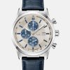 - Multifunctional day, date, and 24-hour international time blue subdials