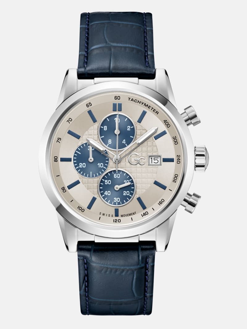 - Silver-tone leather multifunctional watch