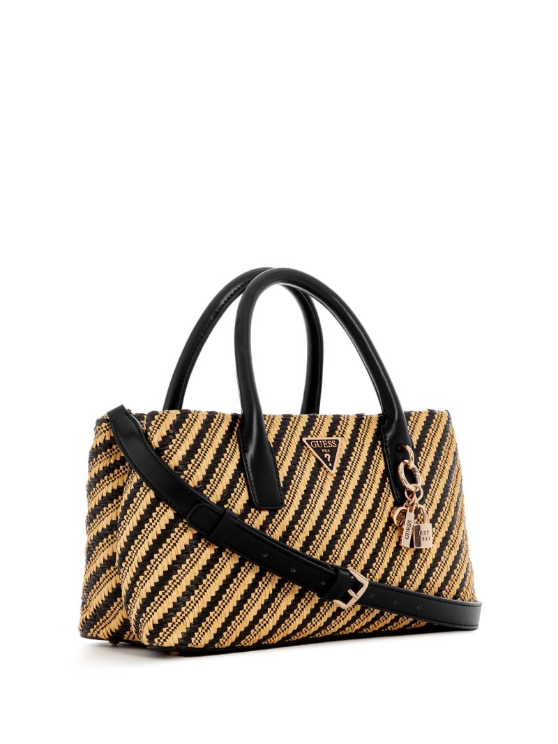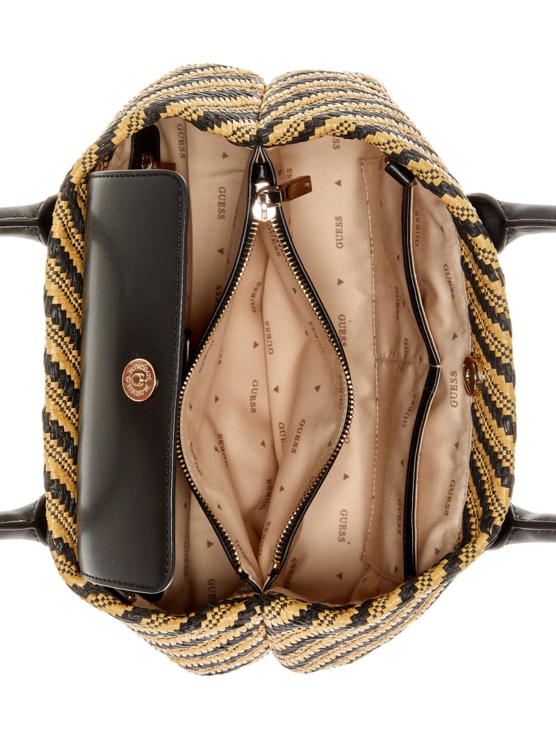 - Top handles with 4" drop. Detachable crossbody strap with 22" drop.