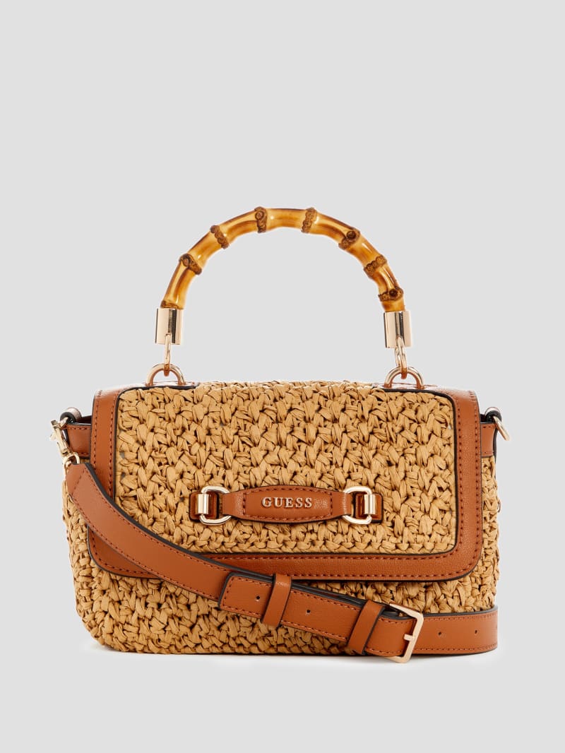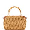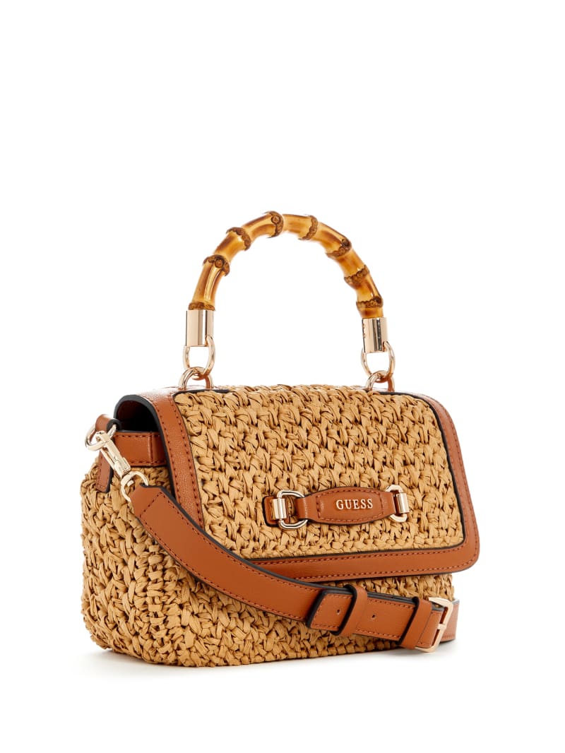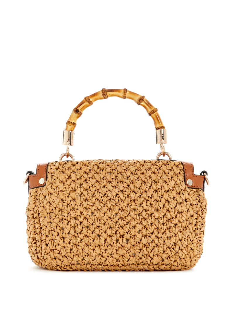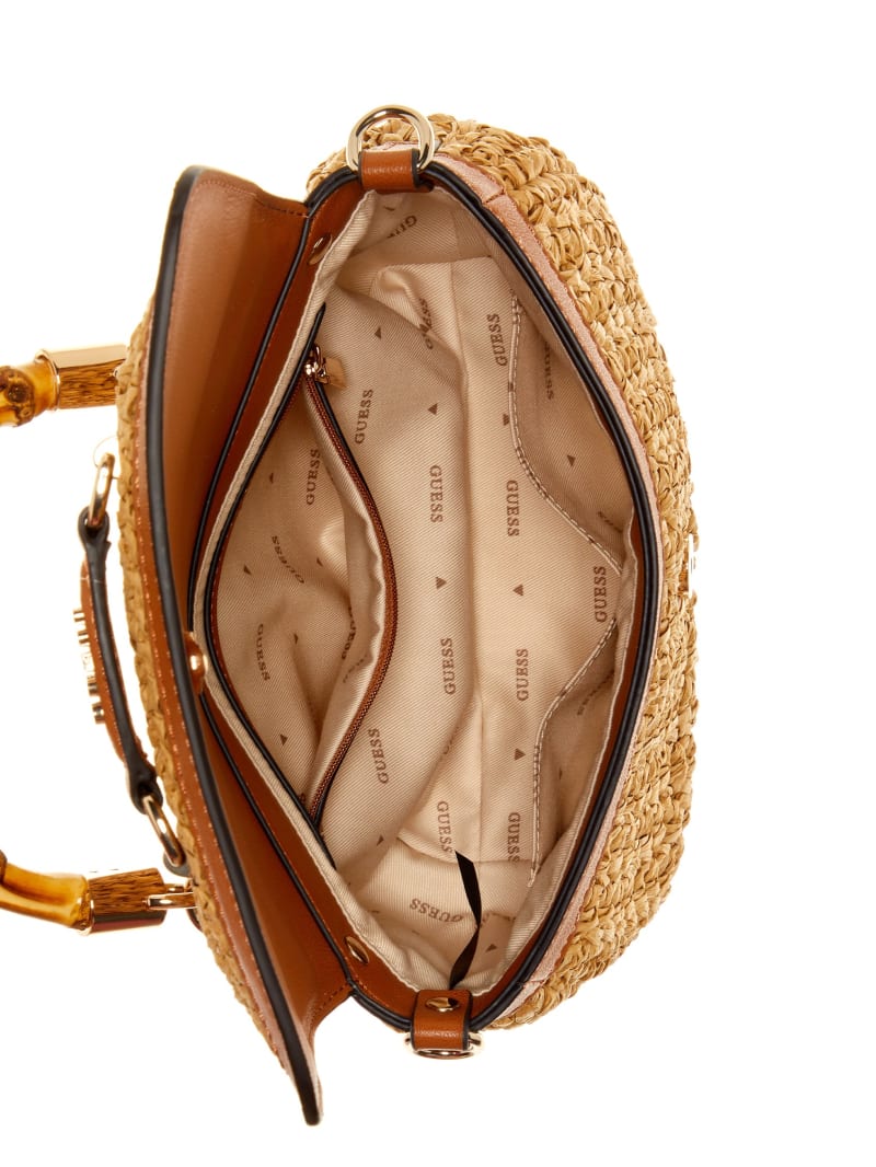 - Bamboo-look top handle with 4" drop. Detachable crossbody strap with 22.5" drop.