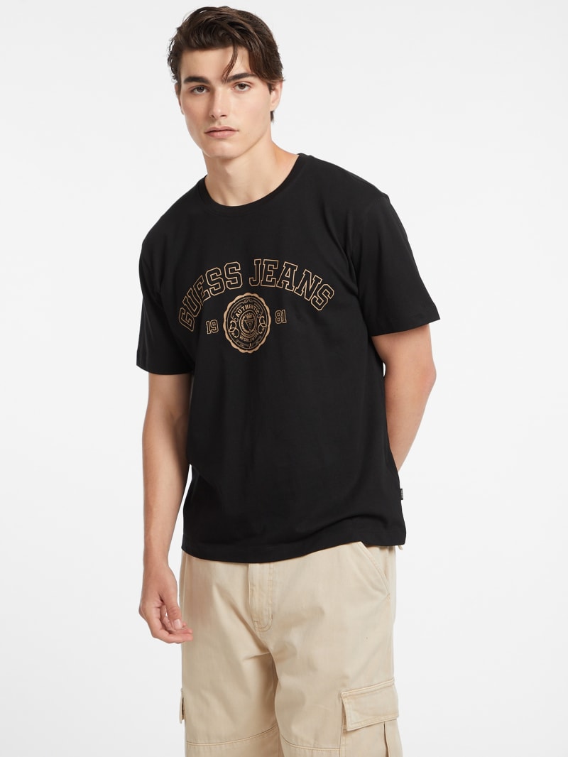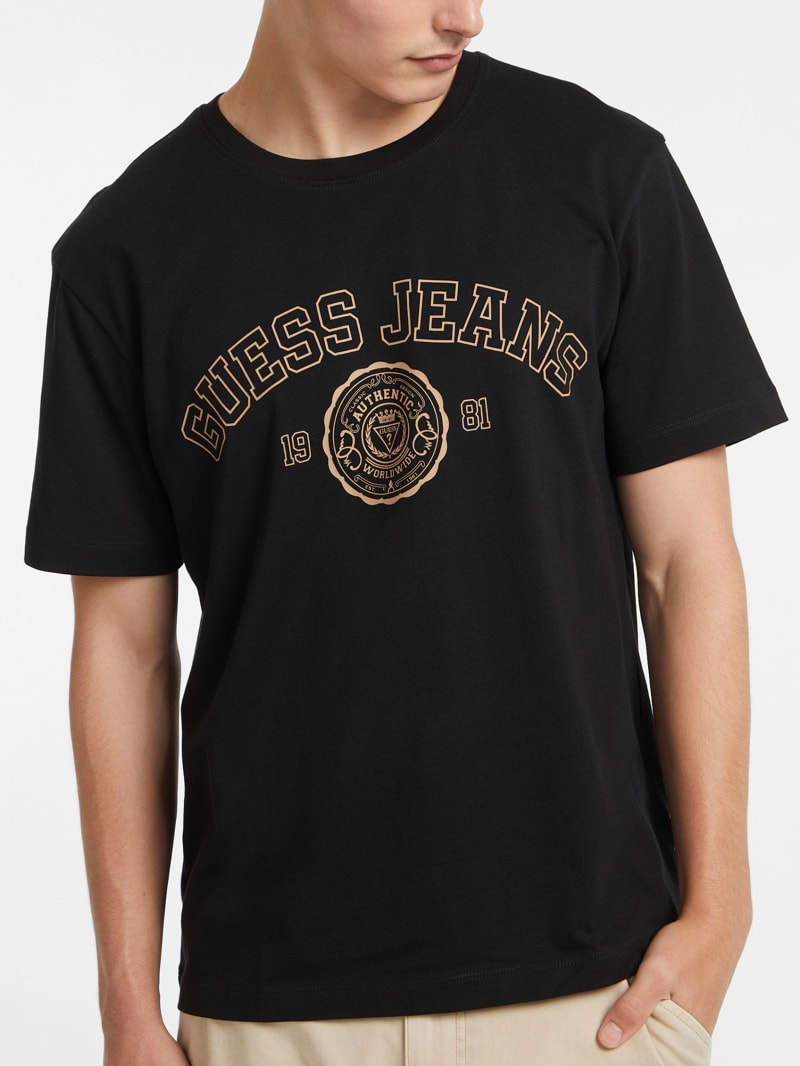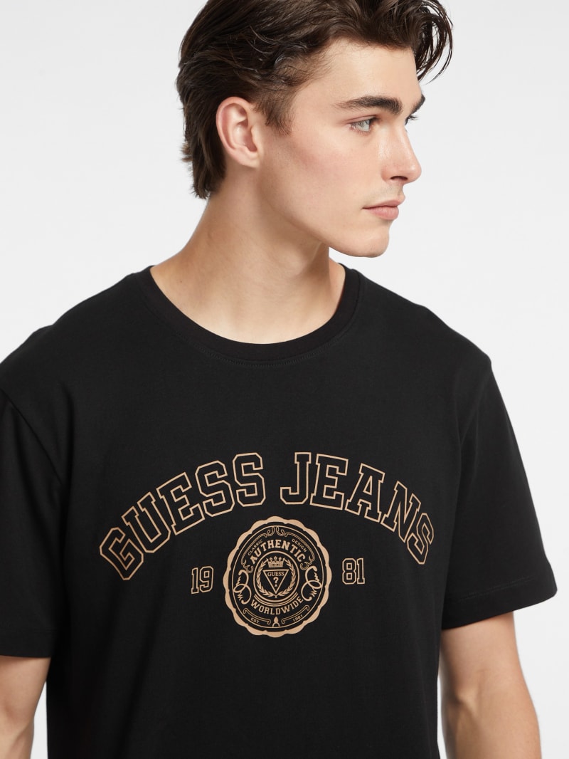 A classic tee with GUESS JEANS stamp graphic detailing across the chest. Crafted in our organic cotton blend.
