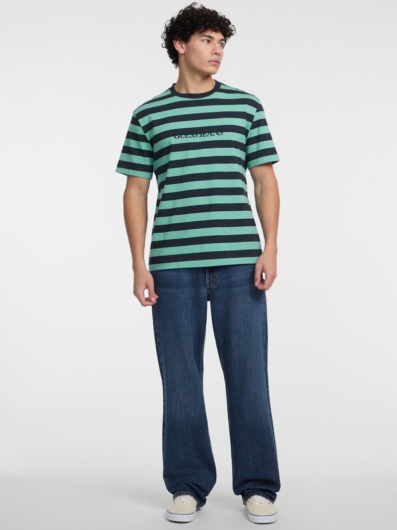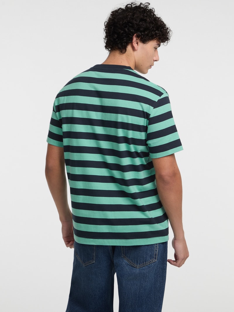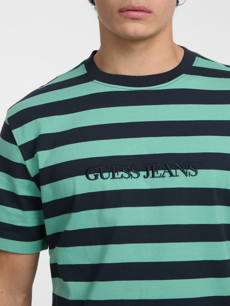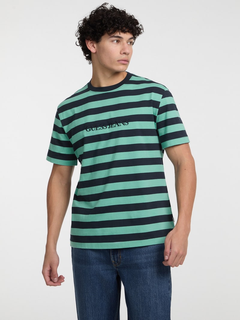Reimaged from our archives, this classic fitting jersey tee features thick stripe detailing and embroidered logo monogram. Made with 100% organic cotton.
