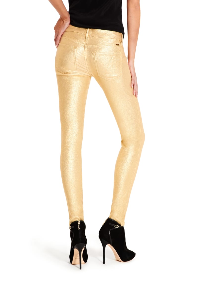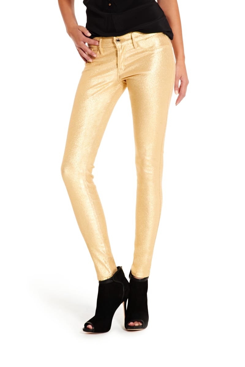 We’ve put the Midas touch on these skinnies. Allow all your looks to take center stage in a signature pair of 61’s that shine all night (or day)! •Low rise•Skinny leg•Mock front pockets. Two back patch pockets. •Glitter finish •Zip fly with button closure•8” front rise•30” inseam•10” leg opening•66% Cotton, 31% Polyester, 3% Lycra•Machine washMeasurement taken from a size small