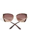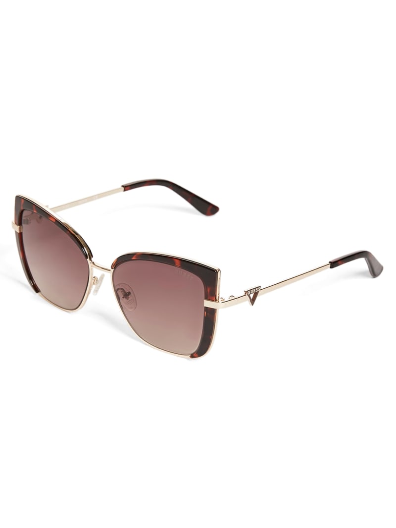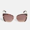 A pair of cat-eye sunglasses featuring tinted lenses, wire trim and a logo detail for a retro-inspired look.