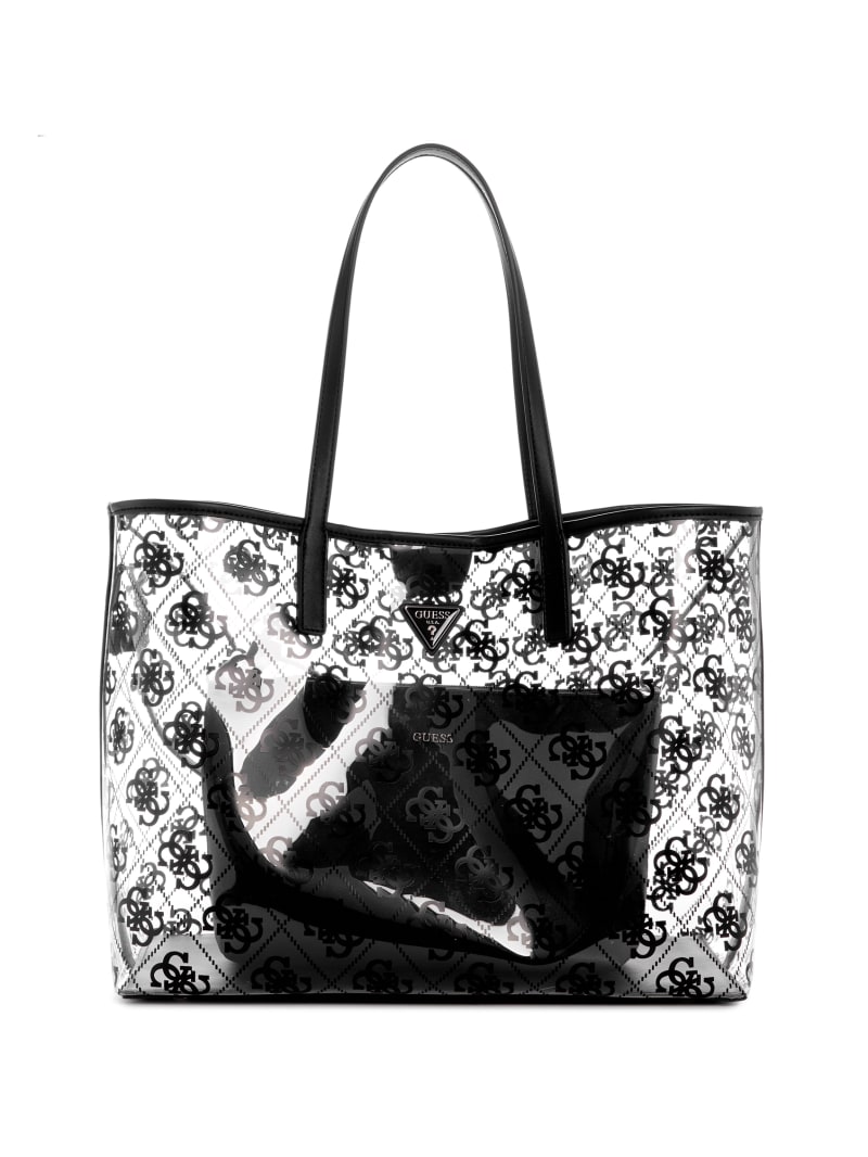 - Clear faux-leather tote