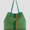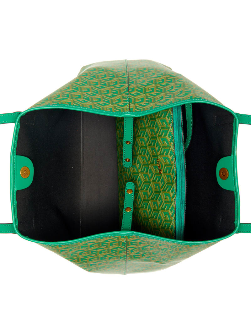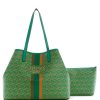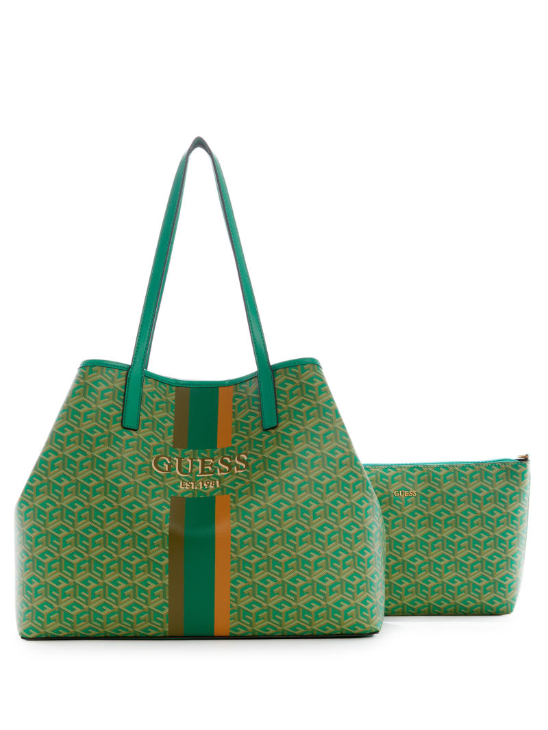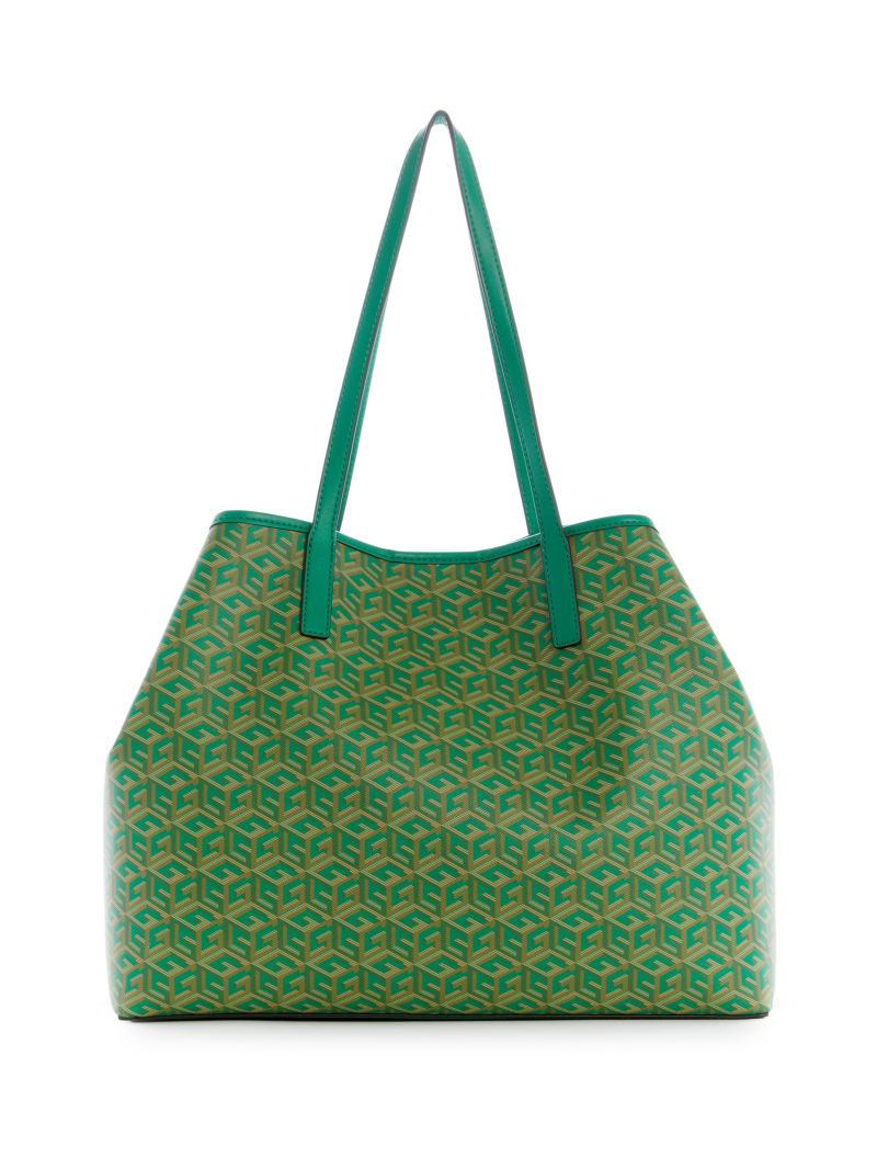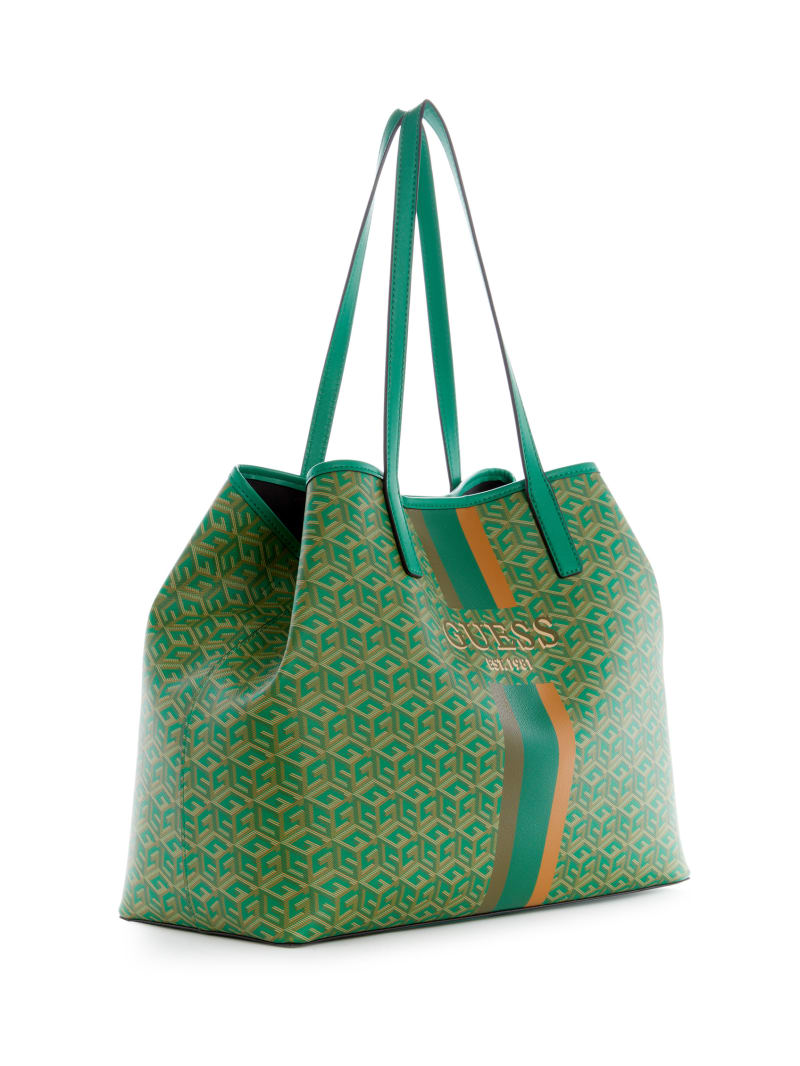 Carry it all in style with this spacious faux-leather tote featuring an updated logo print with striping and text details at center front.