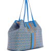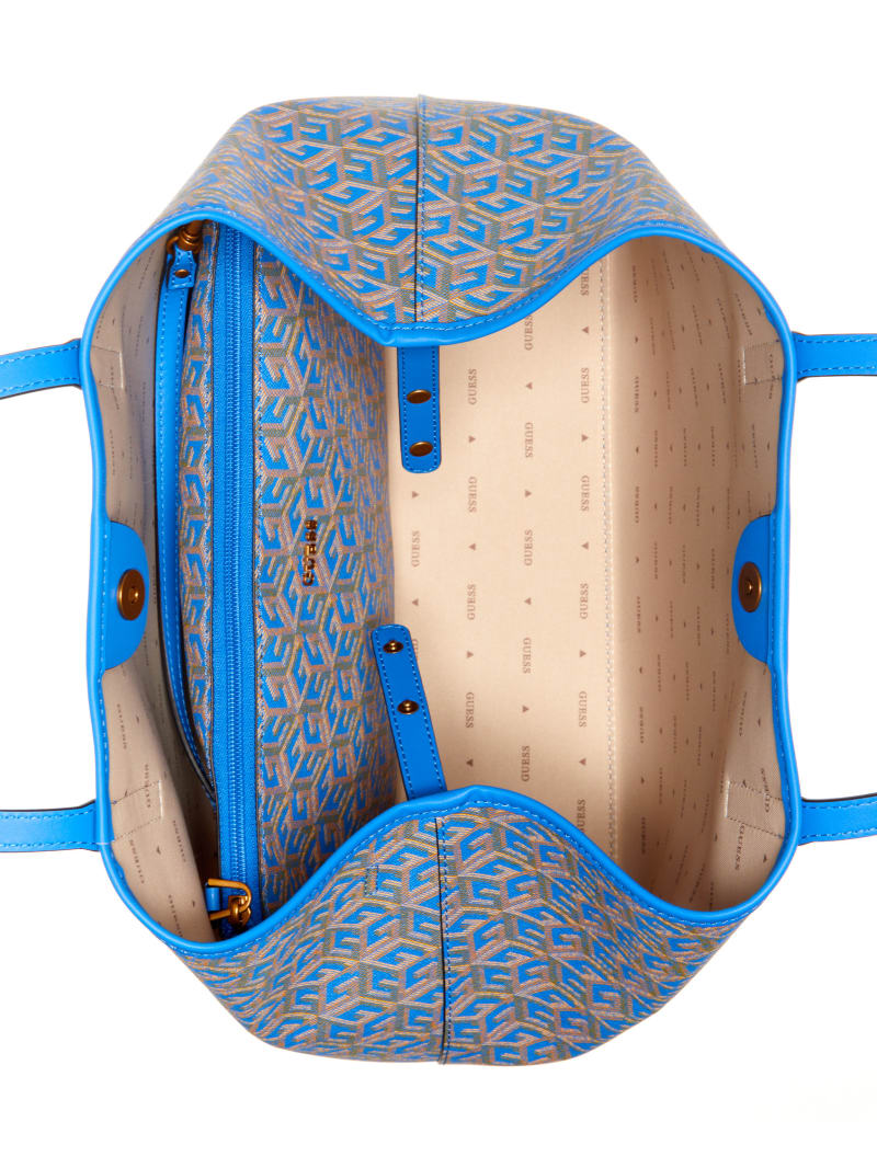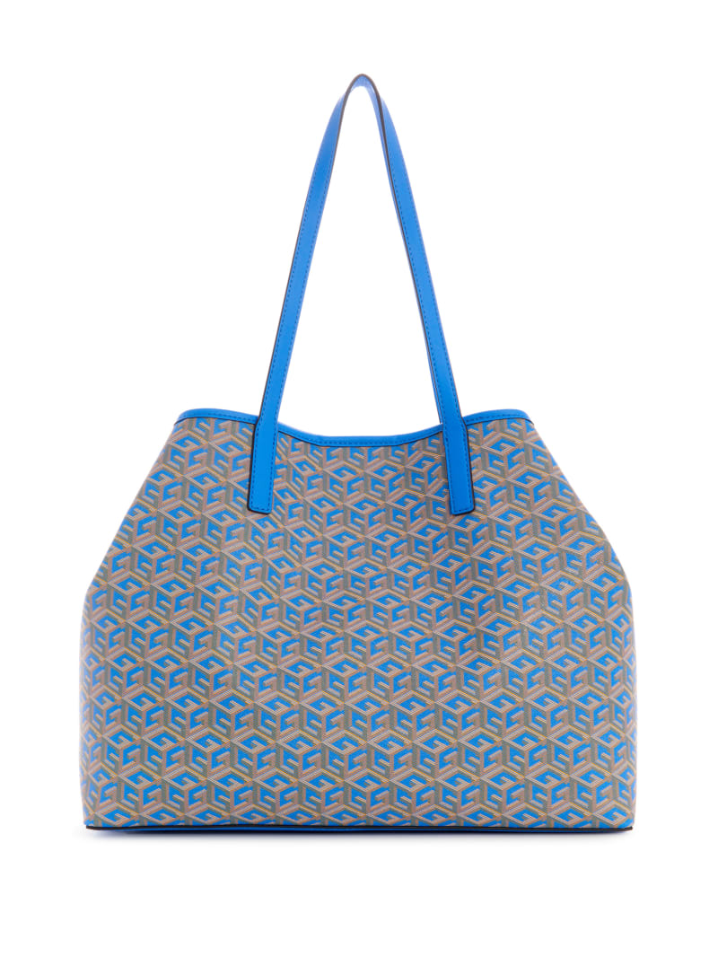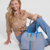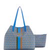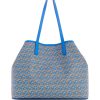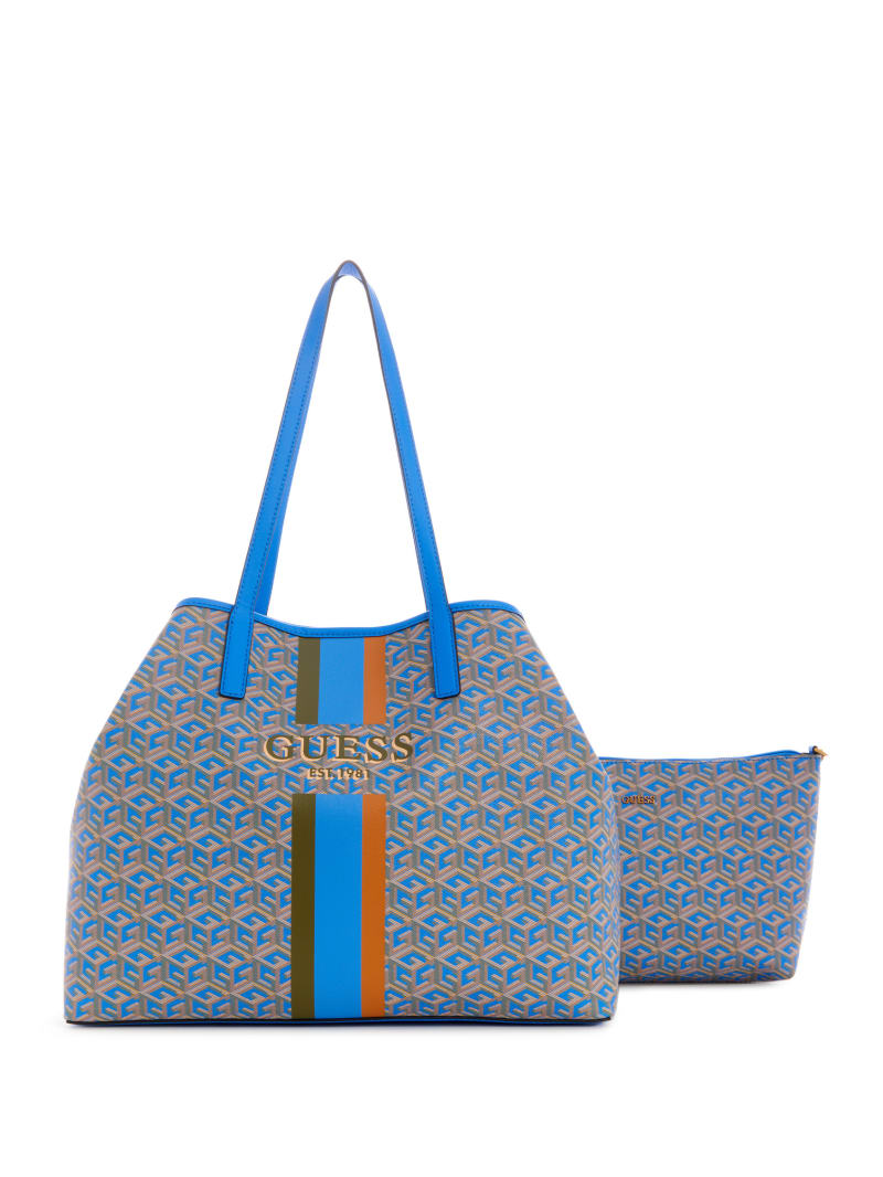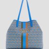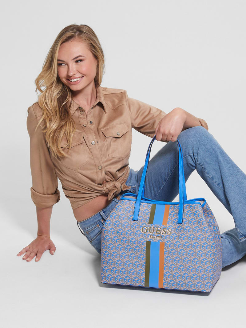 Carry it all in style with this spacious faux-leather tote featuring an updated logo print with striping and text details at center front.