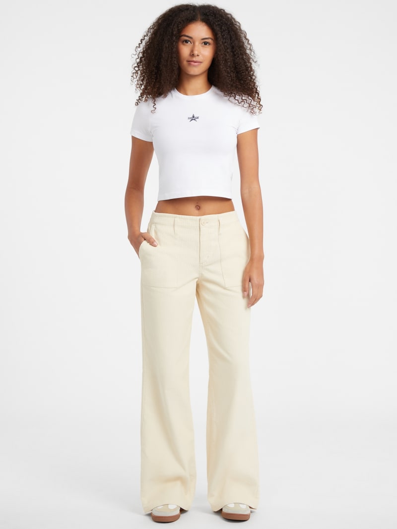 - High rise, sits at natural waist. Relaxed fit and wide leg.
