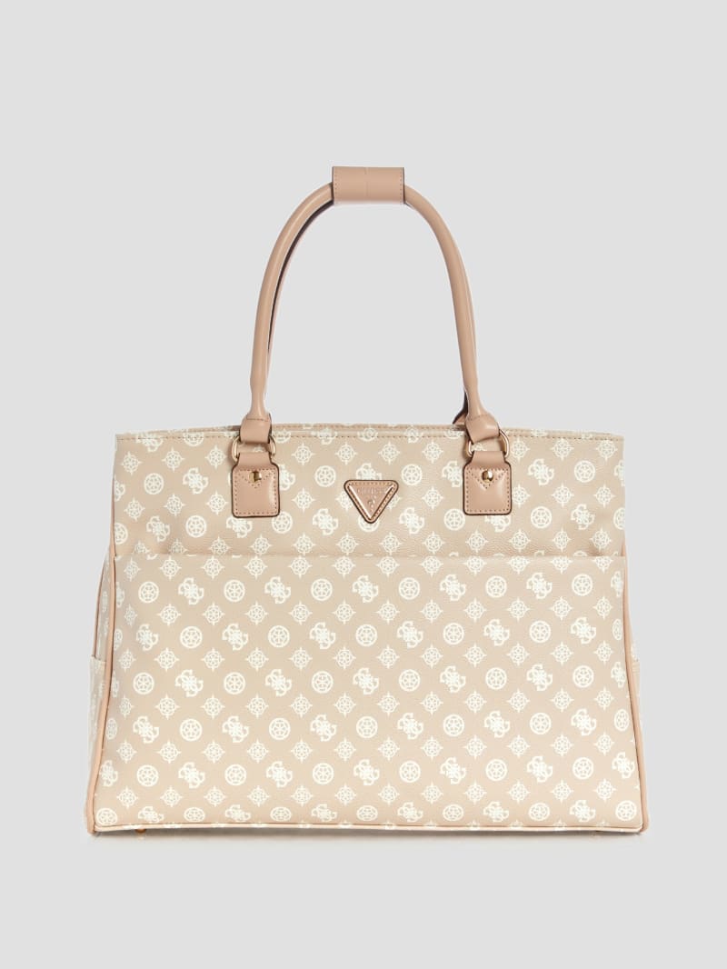 - Shiny gold-tone hardware and front signature triangle