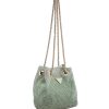 - Shiny gold-tone hardware and front signature triangle